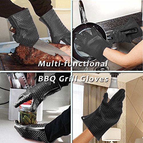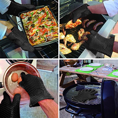 Homar Set of 2 Silicone Heat Resistant BBQ Grill Gloves Oven Mitts & Pot Holder - Best in BBQ Accessories - Waterproof Max Heat Gloves Perfect for Cooking, Camping, Grilling, Smoking & Baking (Black)