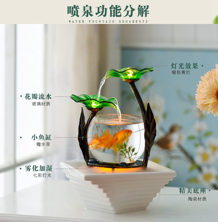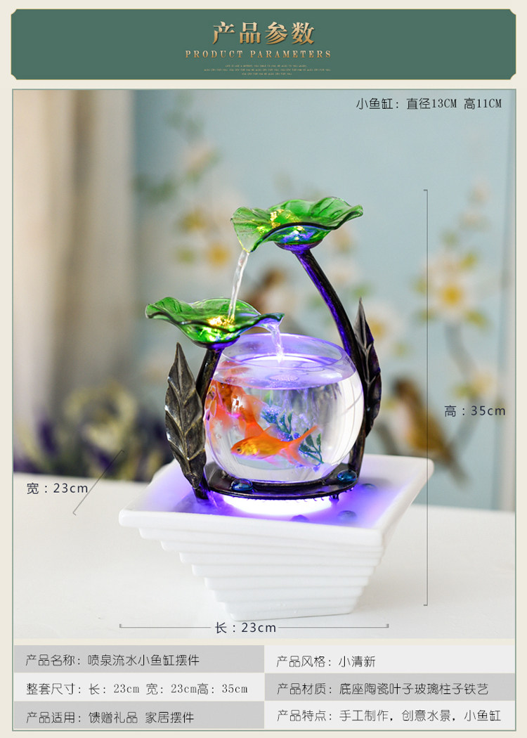High height 25CM with crystal ball, high 22CM with atomizer, high 22CM with atomizer + small fish tank, high 35CM with atomizer + small fish tank, high 36CM with atomizer + crystal ball, high 30CM with atomizer + Waterwheel,