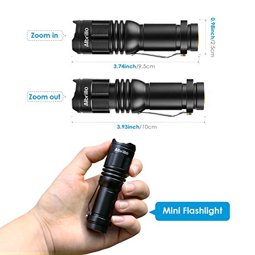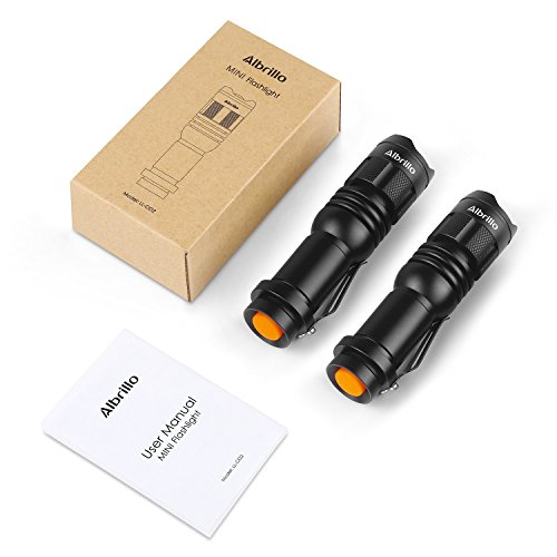 Albrillo Tactical Flashlight LED Torch, Mini Flashlights Adjustable Focus Zoomable, Bright 3 Mode, 2 Pack