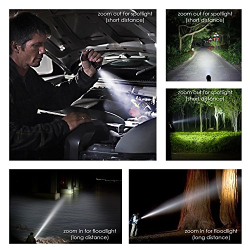 - 【Adjustable Focus Range】Support zoom in-out,Zoom out for intense spotlight an object, Zoom in for floodlight to large area illumination