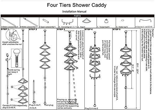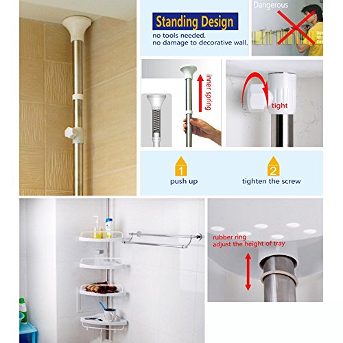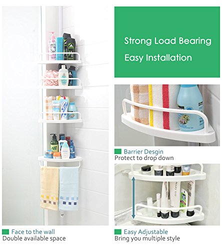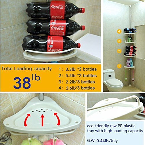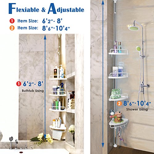 Bathroom Constant Tension Corner Shower Caddy Pole, Commercial Grade Rustproof Bathroom Corner Rack for Shampoo, Conditioner, Soap –Ivory