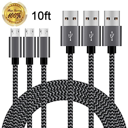 Micro USB Cable, Aokesi 10 Feet Extra Long Micro USB to USB 2.0 Cable, A Male to Micro B Charge and Sync Cord for Android/Samsung/Windows/MP3/Camera and other Device(3-Piece)