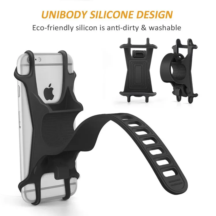 Durable Adjustable Silicone Tie Strap Cell Phone Handlebar Bike Mount Phone Bicycle Mount Holder for iPhone 8 7 4-6 "smartphones