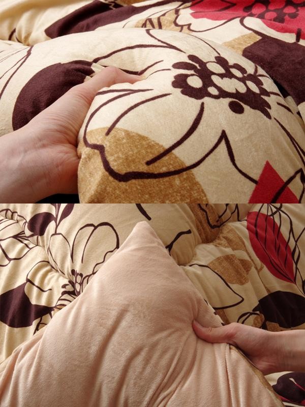 | カジュアルなデザインのこたつ布団です。側地には柔らかな肌触りの短毛のマイクロファイバー生地を使用しています。 |