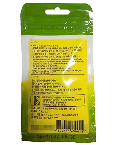 instructions for use: Placed the clip as close as possible to exposed skin, for example on the edge of cuffs, on shoelaces, on a visor of cap or hat, pockets, backpacks, or any item of clothing. Two or more clips can be worn to maximize the effects. When not in use, please store it in a zipped bag. The clips remain effective for up to 2-3 months when unused, stored in a zipped bag, the clips remain usable for up to a year.