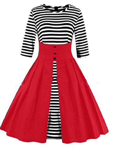 -. Title : Nicellyer 女性のスプライシングのクルーネックストライプビンテージフレアーラインスイングドレス