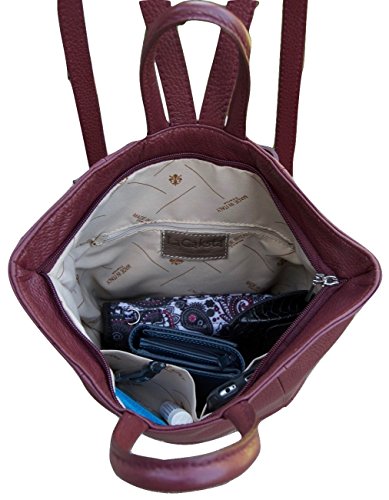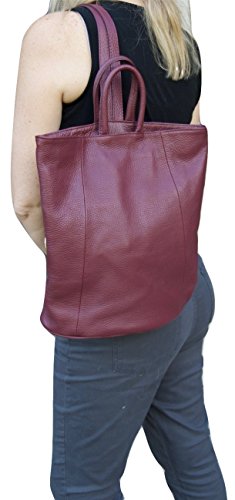 This stunning Leather Backpack Handbag will be your favorite for years. By Fastening the Leather Top Wrap Around Strap the Bag gains a toally new Look. It features a Zippered Top Main Compartment which is roomy for all your necessities including any size iPad, cell phone, makeup keys etc.��Also feaures one inner Zippered Wall Pocket and 2 open pouches.��The choices of what to bring with you are endless on your daily outing and this Bag will help. The Back Side has another Zippered Pocket. The Top Carry Handle is padded for easy and comfortable carrying as a tote bag. The straps are beautiful textured leather and adjustable for wearing as a backpack or a shoulder bag or sling bag. This bag is a bag that will last.��And it is 100% guaranteed!Feature