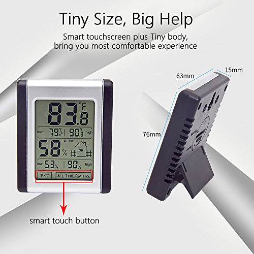 Meer Digital Hygrometer Indoor Thermometer, Humidity Monitor and Indoor Thermometer Gauge with Touchscreen (Battery Included)