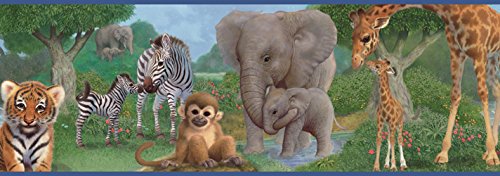 -. Title : Brewster TOT46372B Afrique Blue Jungle Bedtime Portrait Border Wallpaper,