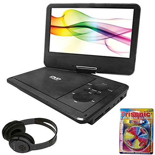-. Feature : Sylvania 10-Inch Portable DVD Player with 5 Hour Battery Life / Plays DVD, DVD-R, DVD-RW, VCD, S-VCD, CD, MP3, MPEG4, WMA, JPEG / Built in Anti-Shock / IN THE BOX: Remote Control / BUNDLE INCLUDES: Sylvania 10-Inch Portable DVD Player with 5 Hour Battery Life, Xtreme Over The Ear Bluetooth Headphones w/Transmitter/Receiver Black, Trisonic Laser Lens Cleaner for DVD/CD Players