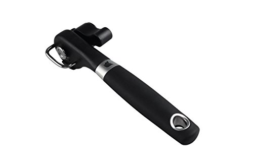 Elite Manual Smooth Edge Ergonomic Heavy Duty Stainless Steel Tin Can Opener, Black. Comfortable Soft Grip Silicone Coated Handle. Easy to Turn Knob, Side-Cut Design Without Touching the Food.