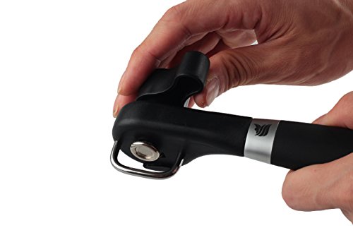 - ELITE QUALITY - Our can opener is made from heavy duty, high-quality stainless steel, soft ergonomic silicone handle. High quality opener won't rust and will last years in your kitchen. It is compact making it easy to store in your drawer or use the convenient hanging hole provided.