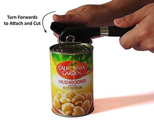 - ERGONOMIC DESIGN - The universal design allows ease of use for all, especially older adults; alleviate hand/wrist pain and discomfort from arthritis due to the extra thick, long, and silicone coated handle. The large turning knob makes operating a breeze. Unlike ordinary can openers, the smooth edge opener has only one convenient handle eliminating the need to squeeze. Will even open bent cans without a problem (no need to throw them away). Requires little effort to use.
