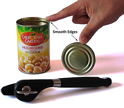 - SMOOTH EDGE - No more jagged edges! The ultra-sharp side cutting wheel opens the can at the manufacturer's joint (never touches the food), resulting in smooth and safe edges on the lid allowing the cans to be closed after opening. The high quality cutting wheel will not dull over time. Safe for children to use. The opener remains clean with no risk of cross-contamination.