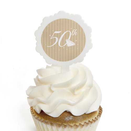 50th Anniversary - Cupcake Picks with Stickers - Anniversary Party Cupcake Toppers - 12 Count