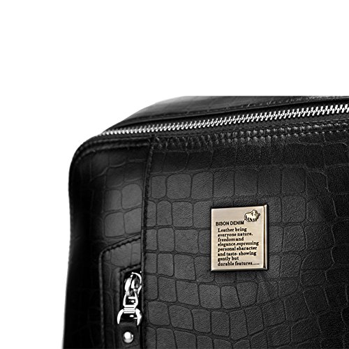 -. Brand : BISON DENIM -. Color : Black2 -. Department : mens -. Feature : 100% genuine hand-crafted retro leather / Immaculate craftmanship with beautiful interior & gorgeous looking & comforting smell. / Extra capacity & perfect dividers: laptop, charger, books can be fitted well inside. / Top carry strap and two adjustable shoulder straps for a perfect fit. / A faithful companion for any man wherever, whether for work, studying or leisure time. -. Model : N2365-1B -. PackageQuantity : 10 -. ProductGroup : Shoes -. ProductTypeName : HANDBAG -. Size : Large -. Title : Bison Denim Durable Mens Real Leather Men's Hiking Backpack Bookbag Travel bag (Black/N2365-1B)