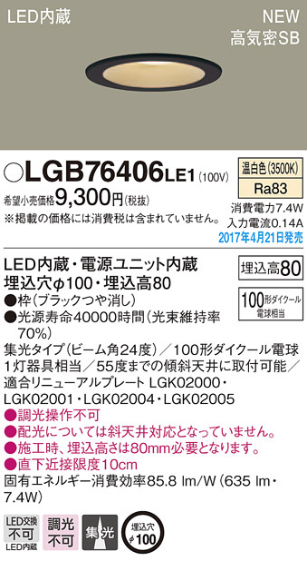 ●寸法(mm):埋込穴φ100・埋込高80
