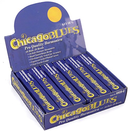 Chicago Blues Harmonica, KHCB-6G, Mini Party Pack of 6, 10 Hole Harps - Key of G