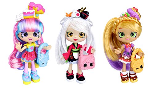 Set of 3 Shopkins Shoppies Dolls - includes Sara Sushi, Pam Cake and Rainbow Kate!