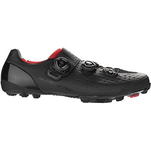 Studio : Shimano Publisher : Shimano Binding : Misc. Product Description The sponsored off-road racing crowd sure likes Shimano's SH-XC9 shoes. On the starting grid, you'll notice the brightly colored high-viz yellow and electric blue ones on the sport's best riders. The black ones aren't as noticeable but we're sure there are plenty of those out there too. These shoes exude style and quality and that's apparent as soon as you pull them from the box that these shoes are designed for performance. Shimano launched its S-Phyre concept as part of its top-of-the-line road and mountain shoes and the two share some similar construction features. The XC9's are designed for off-road racing at the highest level and if you have a wider foot and value maximum power transmission, superb fit, and excellent comfort have a look at the SH-XC9 Bicycle Shoe - Wide - Men's. Shimano constructs the XC9 with a one-piece upper using Teijin synthetic microfiber leather that helps keep water out, while the large and numerous perforations allow your feet to breathe. Dialing in the fit comes courtesy from the dual Boa IP1 dials offering independent and micro-adjustable tension and instant release. Shimano believes that the fit is so refined and adjustable, that it didn't bestow the XC9 - Wides with the Custom Fit heat and vacuum system we have known and loved on its high-end shoes over the past decade or so. We agree that the new Boa retention system and the soft upper creates such a near-custom fit that we're not sure if a better or more comfortable fit is achievable. At the rear of the shoe, Shimano uses a rounded external heel cup that caps the carbon sole and continues up the back of the heel. This design supports the heel preventing any possibility of twisting and rolling, stabilizing the foot for more efficiency. Inside the shoe at the heel cup, a cat's tongue like gripping fabric further bolsters the foothold, providing a solid foundation for the feet without having to resort to excessive tension on the uppers. Shimano employs the French rubber wizards... 0