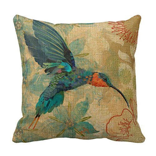 SIXSTARS Cotton Linen Square Fashion Blue Orange Hummingbird Bird Teal Aqua Red Flowers Pillowcases
