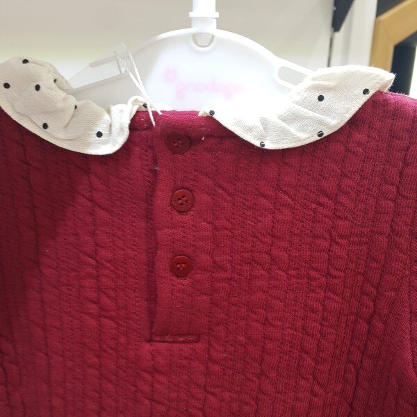 편하게 입을 수 있는 프릴 삼중지 상하복 《삼중지 :(상의)사이로 안쪽면이 보이는 것은 불량이 아닙니다》칼라는 진한 자홍빛에 가까운 레드칼라입니다브러치는 탈부착이 가능하며 옷을 착용하시기 전에 먼저 상의에 부착한후 착용해야 아이들이 다치는 것을 조금이나마 방지합니다