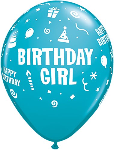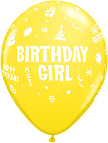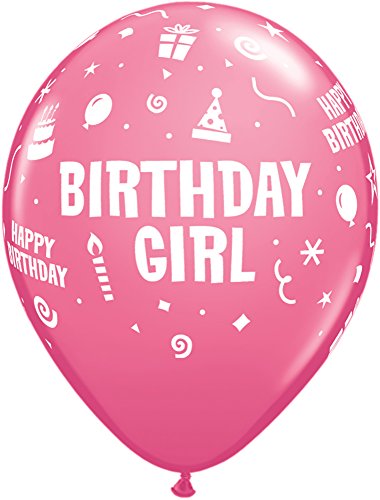LA Balloons 11910 "Birthday Girl" Qualatex Latex Balloons (50 Pack), 11", Multicolor