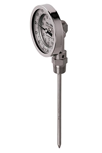 Tel-Tru 40101250 Model Bc550R Resettable Bi-Metal Process Grade Thermometer, Stainless Steel, 5" Dial, 1/2" Npt Bottom Connection, 0.250" Diameter x 12" Long 304Ss Stem, 0/200 Degrees Fahrenheit, +/- 1% Full Span Accuracy