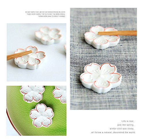Astra Gourmet 5pcs Japanese Style Ceramic Sakura Flower Chopstick Rest Spoon Fork Knife Holder