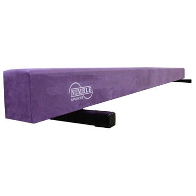 The low balance beam is 8ft long, 4in wide and 6in tall. Beams are made using laminated wood construction. Top of beam is padded with ⅜ closed cell foam. Wrapped with purple synthetic suede, and comes with steel braces. The weight limit for the balance beam is 150lb.
