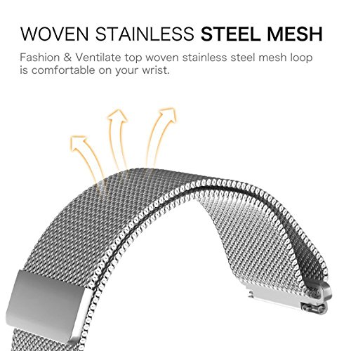 22mm 20mm 18mm Milanese Loop Band - Fully Magnetic Closure Clasp Replacement Mesh Stainless Steel Metal Bracelet Strap (22MM, Sliver)