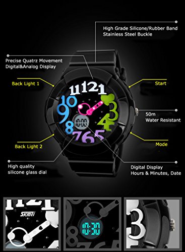 WATERPROOF FOR DAILY USE: 50M Water Resistant, HANDWASH, SWIMMING, NO PROBLEM ! Feel free to wear the watch when you are showering, swimming and diving. NOTE: Please DO NOT press any buttons in the water or wear this watch for longtime underwater activities - such as diving, ect. Too much water contact or usage in extreme Hot or Cold temperature will shorter watch life.