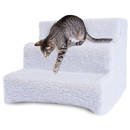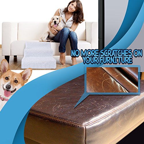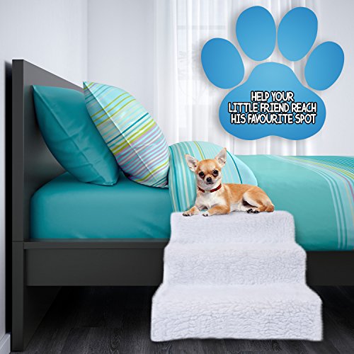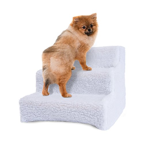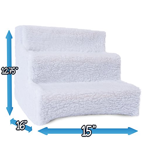 The 3 Step Pet Easy Up Staircase is a great gift for small dogs, puppies, older cats and kittens. Help your pet reach the High Bed, Sofa, or Car with this portable dog furniture. An ATTRACTIVE, AFFORDABLE way to help your pet reach her favorite napping place. These pet steps for small dogs are strong, lightweight, and padded for the safety of your pets. Lightweight design is easy to lift and very portable. Helps reduce damage to furniture from pets (especially little kittens) jumping or clawing to reach the surface. Features removable fleece-like cover that can be machine washed. The pet sofa and bed steps are great for small pets with arthritis, hip dysplasia or other conditions where mobility is impacted. Light assembly required. Before purchase, please measure the height of the surface you want your small dog or cat to reach. The height of these pet stairs is 12.75 inches. Weighs 6 pounds when assembled for easy portability. psbdab18 dog stairs for medium dogs dog stairs foam