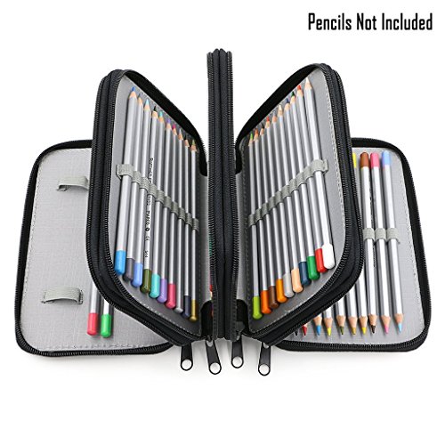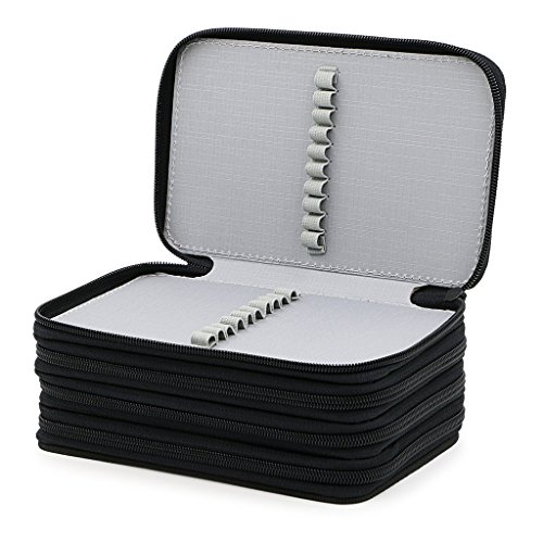 CONBEE 72 Inserting Large Capacity Multi-layer Pencil Case Pouch for Colouring Pens and Pencils (Pencils Not Included) (Black)