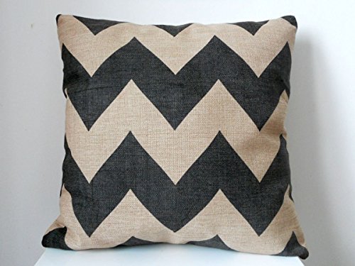 Decorbox Cotton Linen Square Throw Pillow Case Decorative Cushion Cover Pillowcase Black Zig Zag Chevron Fade Zigzag Stripes Wave 18 "X18 "
