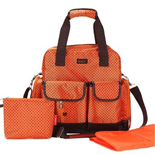 Mummy diaper bag made of durable waterproof nylon, zipper closure, and it is easy to wipe clean. You might have to air it out for a couple of days for the new bag smell to disappear. Other than that, it is perfectly functional as it is esthetically attractive.Large capacity with changing pad, shoulder strap, one small waterproof organizer bag, and stroller straps wipes case accessories, and the total weight is 1120g.5 external pockets: easy-access exterior pockets for changing pad at the back and 2 large Magnet button pockets on the front. On one side is the deluxe EPE foam warm keep zippered bottle pocket, another pocket with wipes case on the other side. Stroller attachments to your stroller handles, removable padded shoulder strap gives you the option to wear the bag over-the-shoulder or messenger-design or backpack, total with three carrying options, reinforced footed bottom. Spacious interior with multiple organizational compartments , 6 interior pockets for nappy or baby stuff.The bag can be used as a tote bag, shoulder bag or backpack, and it's multifunctional with color beige, black, orange and red. It will do dad and mum a great favor when they go out for travelling. 0