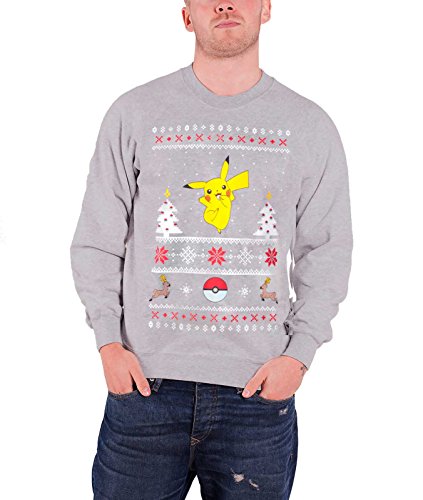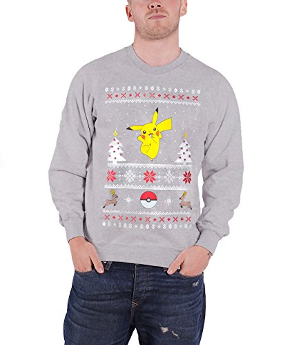 Pokemon Christmas Jumper Sweatshirt Pikachu Christmas Official Mens Grey