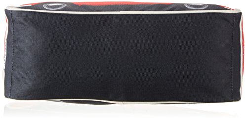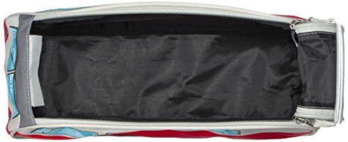 Fully-lined, water-repellent nylon canvas with handle features elasticized pockets, zippered roll-back top and compartments, with Velcro® closure to secure your essentials in retro style.