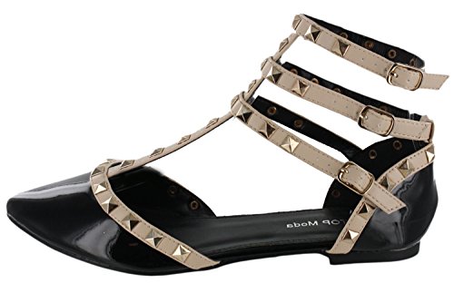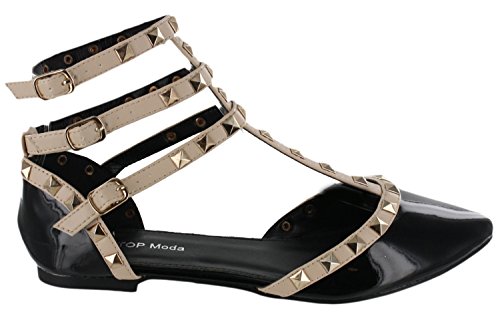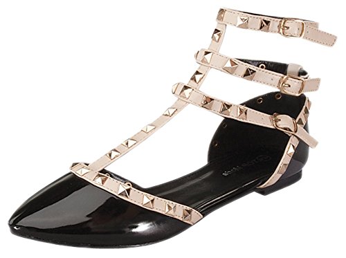 Product Description These stylish studded flats feature trendy pointed toe and adjustable buckles on gladiator styled straps. This shoe masters retro fashion with this year's newest trends! 0
