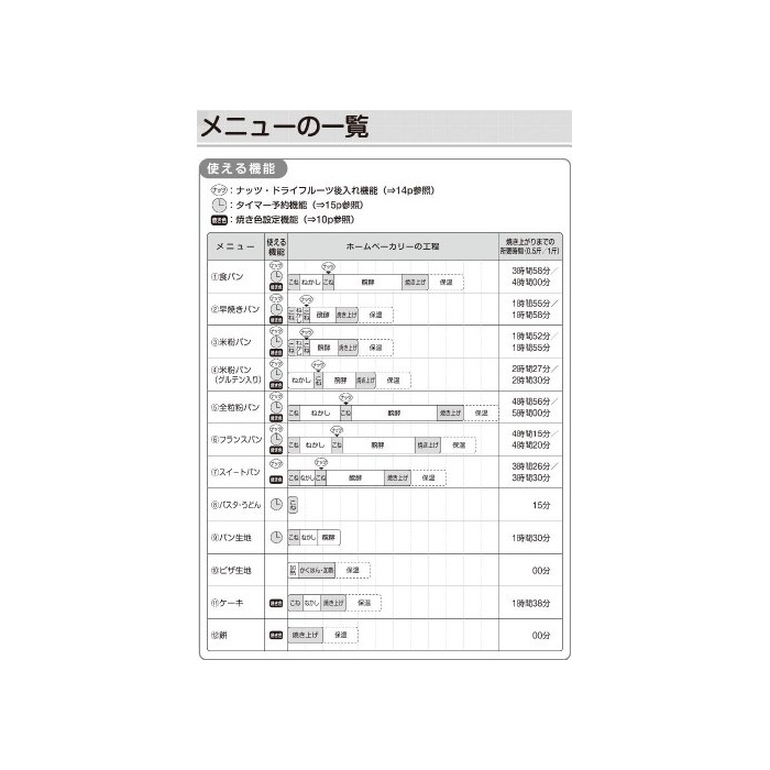 타이머:최장13시간(10 분단위)고, 식빵의 가루(소맥분)용량:150g(0.5근)250g(1근)고, 안전장치:온도 퓨즈(172도)×2개