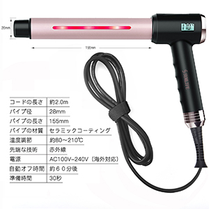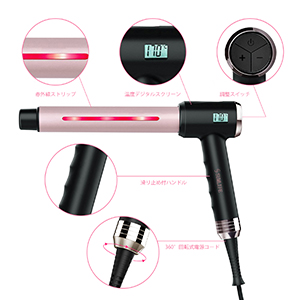 赤外線カールヘアアイロン、潤いとツヤに満ちた綺麗なカールヘアに。