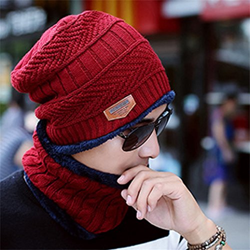 (Brave669)/Accessories/Cold Weather Accessories/DIRECT FROM USA/Mens Winter Warm Skiing Outdoor Sports Knitted Beanie Hat and Circle Scarf Set