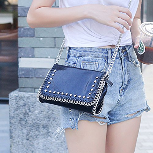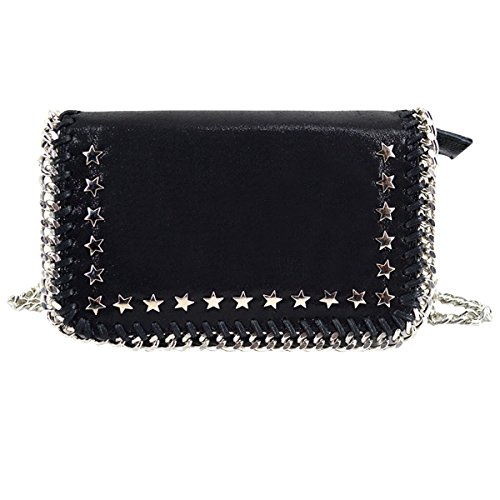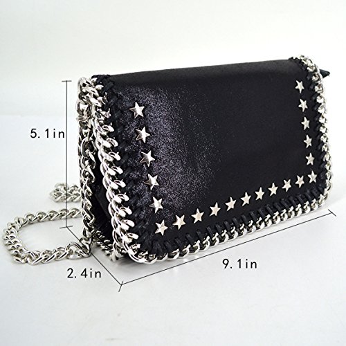Felice Womens Girl Flap Chain Paillette Handbag Messenger Purse Metallic Star Rivets Crossbody Shoulder Bag