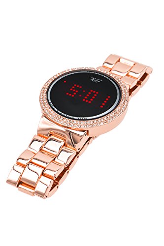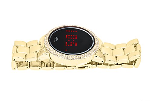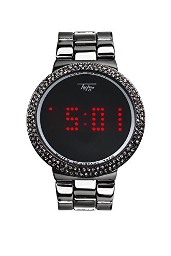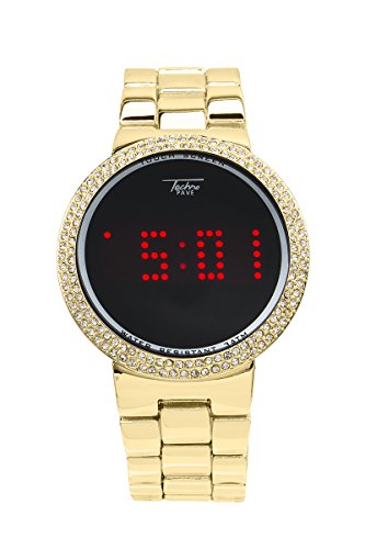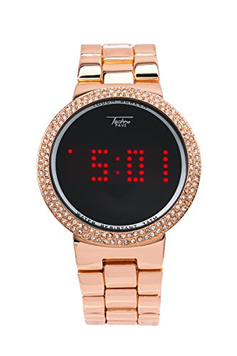 -. Binding : Watch -. Brand : Techno Pave -. Department : Unisex-adult -. Feature : Stylish and trendy sports wear watch with rolling LED display. / Water Resistant up to 3 ATM. Watch will withstand brief immersion in water or splashes. / 38 mm Case Diameter & 9 Inches Band Length / Stainless steel back cover / Designed in New York City - Japan Movement- -. Label : Techno Pave -. Manufacturer : Techno Pave -. MPN : 8165/MB -. PartNumber : 8165/MB -. ProductGroup : Watch -. ProductTypeName : WATCH -. Publisher : Techno Pave -. Studio : Techno Pave -. Title : Smart Touch Screen Gold Metal Band Watch with Lab made Diamonds on the Bezel-Techno Pave