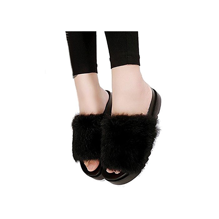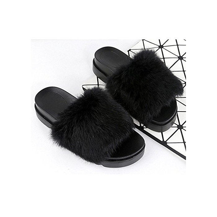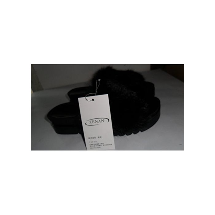 Zenan [《젠안》]ZENAN 퍼(fur) 샌들 신트렌드! 추 샌들 납작한 모양 오픈 투 높은 외출 블랙 23