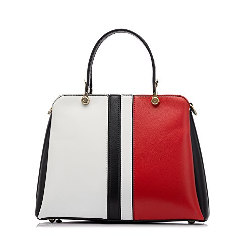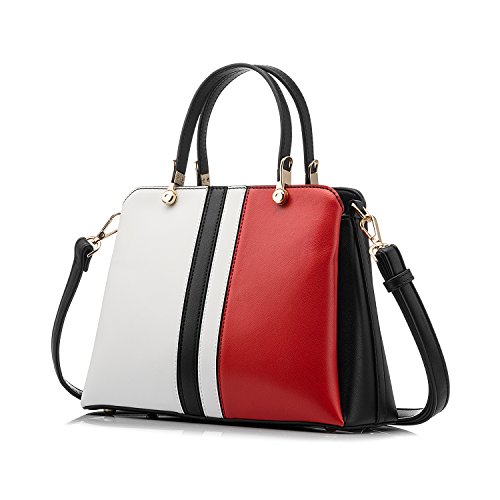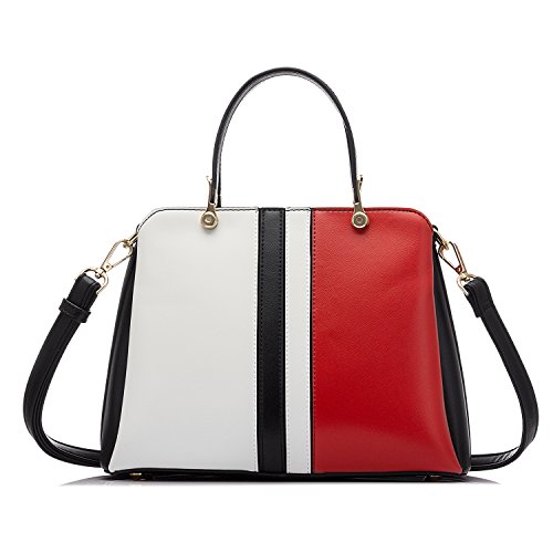 -. Brand : Realer -. Department : womens -. Feature : Ultra soft high quality PU leather with fabric lining. Modern gold-toned hardware. / Top zipper closure. Adjustable and removable shoulder strap, with handle. / Exterior is 1 zipper packet in the back. Interior is 1 zipper pocket, 1 cell phone pocket and 2 main compartment. / Two main colors design,4 metal "feet" can help to protect the bottom of the bag. Can hold lipstick, keys and iPad but can not put in A4 magazine. / Top-handle bag size:11.4" x 8.7" x 4.7"(WxHxD) Handle height: 4.3" Shoulder drop: 13"-24.4" -. ProductGroup : Shoes -. ProductTypeName : HANDBAG -. Title : Realer Designer Top Handle Bag for Women Casual Lady Tote Bag