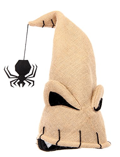 Be the bug-filled boogie man at your next cosplay party in this Oogie Boogie Santa Hat Featuring burlap style fabric, velvet eyes and menacing stuffed eyebrows you can roll the dice for a good time with this Disney Tim Burton's Nightmare Before Christmas Oogie Boogie Santa Hat by elope. - 100% Polyester with wire brim and hat insert