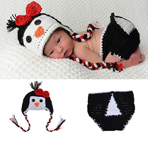 Eyourhappy Baby Newborn Handmade Crochet Knitted Photography Props Penguin Hat Pants Outfit