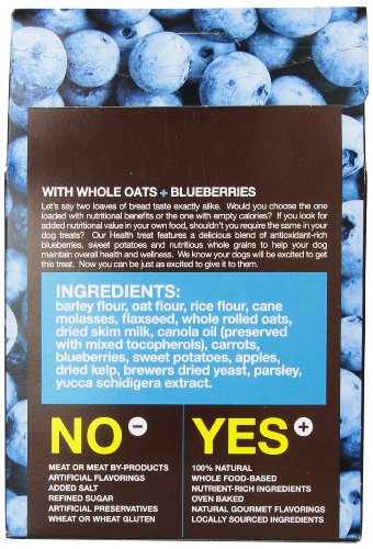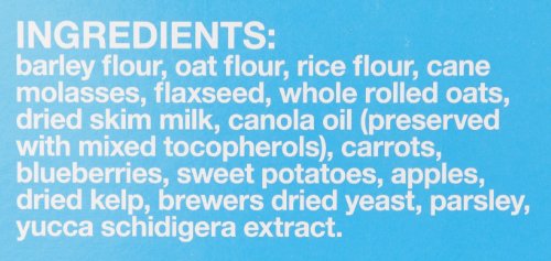 -. Feature : Antioxidant rich biscuits to support overall health & well being / Made with all natural & organic ingredients / Contains no meat, fillers, artificial flavors, added salt, artificial preservatives, wheat or wheat gluten