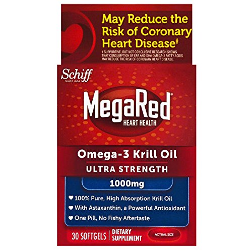 MegaRed Omega 3 Krill Oil supplements provide an optimal combination of omega-3 fatty acids and the powerful antioxidant astaxanthin to support heart health in a once daily softgel.* Supportive research has shown that consumption of EPA and DHA omega-3 fatty acids may reduce the risk of coronary heart disease. MegaRed Omega-3 Krill Oil has been shown to significantly increase your omega-3 index in just 30 days.** MegaRed Krill Oil is absorbed and carried in phospholipid form so it is easily recognized and utilized by your body. MegaRed Krill Oil also contains high quality oil from 100% pure Antarctic krill. And because it's krill oil as opposed to fish oil, MegaRed Krill Oil has no fishy aftertaste or odor. *These statements have not been evaluated by the food and drug administration. This product is not intended to diagnose, treat, cure or prevent any disease. **Supportive, but not conclusive research shows that consumption of EPA and DHA Omega-3 fatty acids may reduce the risk of coronary heart diseaseFeature